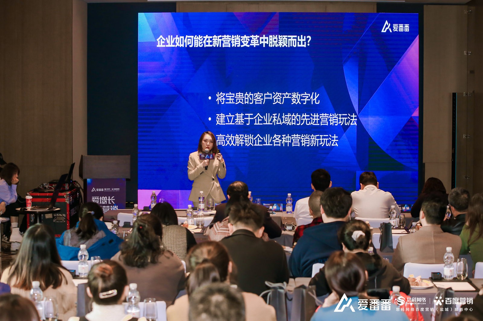 來自思科網(wǎng)絡(luò)百度營銷(鹽城)服務(wù)中心高級運營經(jīng)理 杜娟娟女士為與會嘉賓帶來了使用愛番番實現(xiàn)高效增長的運營技巧。